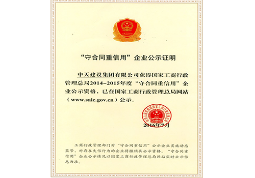 2009年-2018年浙江省工商企业信用AAA级“守合同重信用”单位
